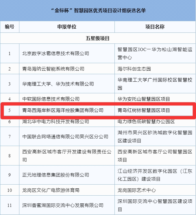 旅業(yè)動(dòng)態(tài) | 青島紅樹林智慧園區(qū)項(xiàng)目入選“金標(biāo)杯”智慧園區(qū)優(yōu)秀項(xiàng)目