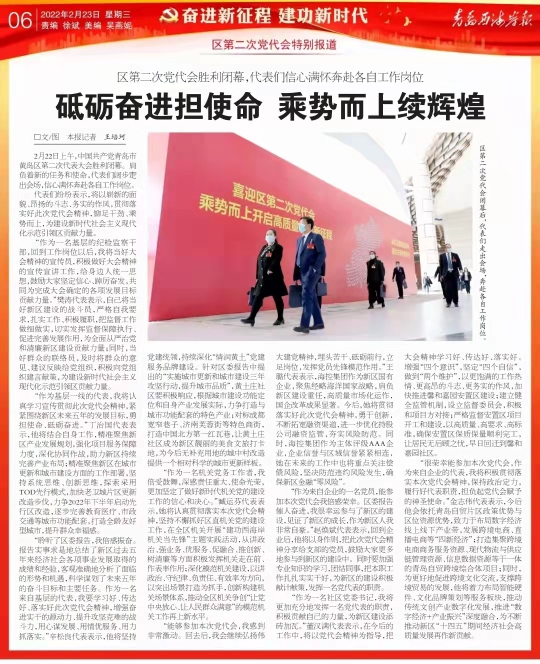 2月22日上午,中國共產黨青島市黃島區第二次代表大會勝利閉幕。肩負著新的任務和使命,代表們闊步走出會場,信心滿懷奔赴各自工作崗位。
